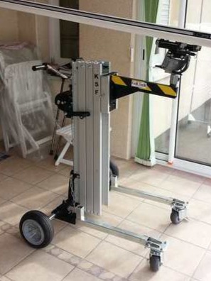 Robot de vitrage compact et démontable pour la mise en place de fenêtres et de vitres lourdes. Conseillé de l’assembler sur place.