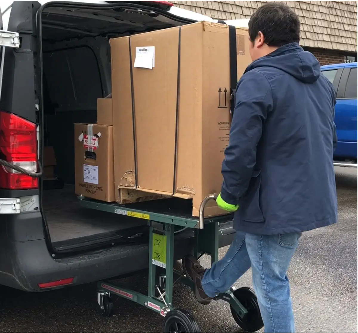 Chariot DEMTRUK permet de charger et de décharger tous types de véhicules avec des produits tels que: machines à café, fours, caisses enregistreuses, photocopieurs,