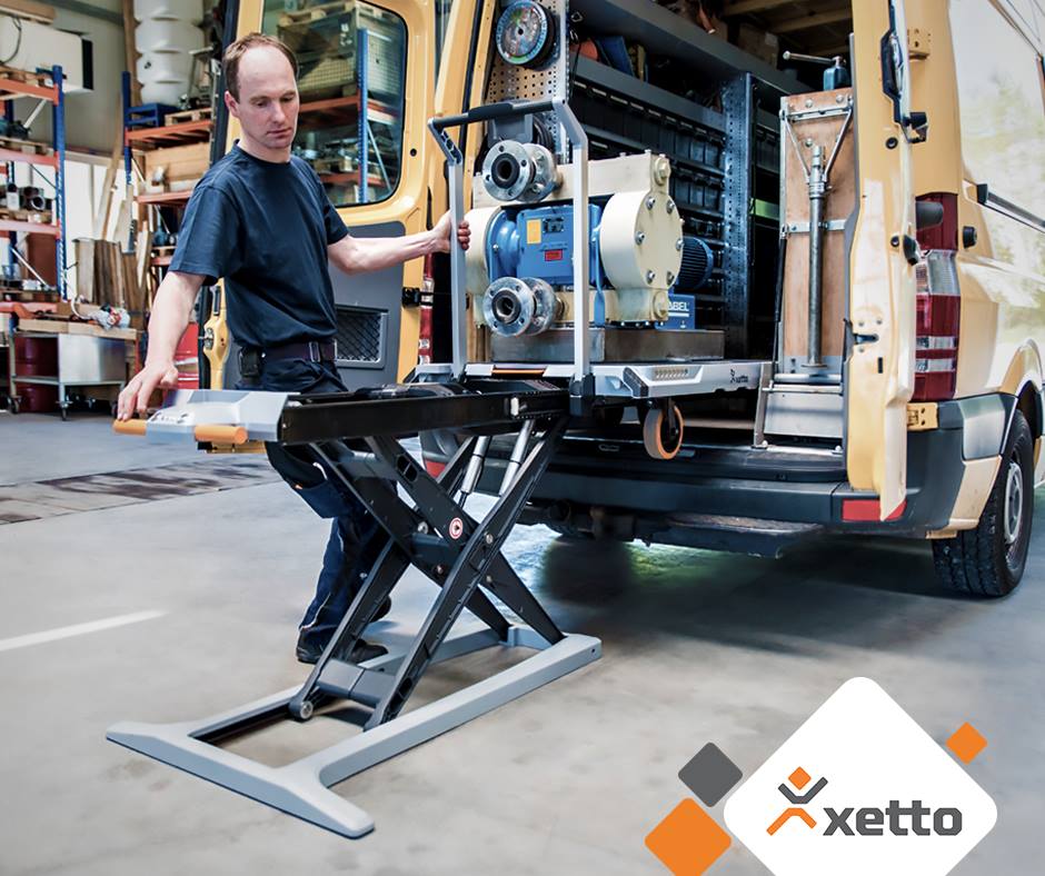 La table de chargement élévatrice électrique XETTO se déplace manuellement sur 4 roues (2 fixes et 2 orientables).